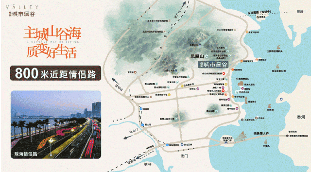 1, 门口八百米即为珠海主干道情侣路,右转10分钟即可到达珠海市政府及重要政府部门;左转10-20分钟即可到达珠海高新产业园、京珠高速入口;