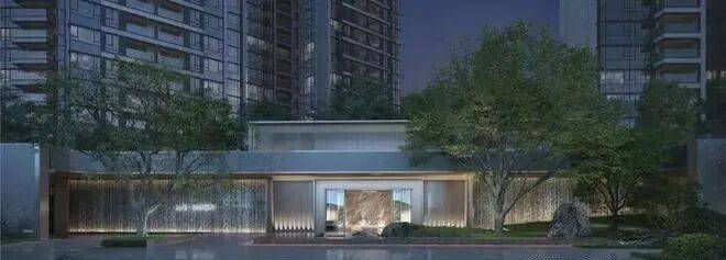 入口50米横向面宽,近6米的高跌水景墙与双层门楼让回家有了一份尊贵与隐奢;随着动线穿林,见山,伴水,来到模仿山石色调与铜色金属融合打造的酒店式大堂,一路草木清香、青石铺地、水系流动,自然的隐奢之美扑面而来。