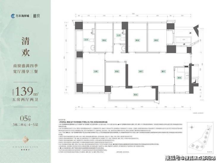 💎约139㎡5房2厅2卫,南向横厅大五房,南北通透,片区独有!