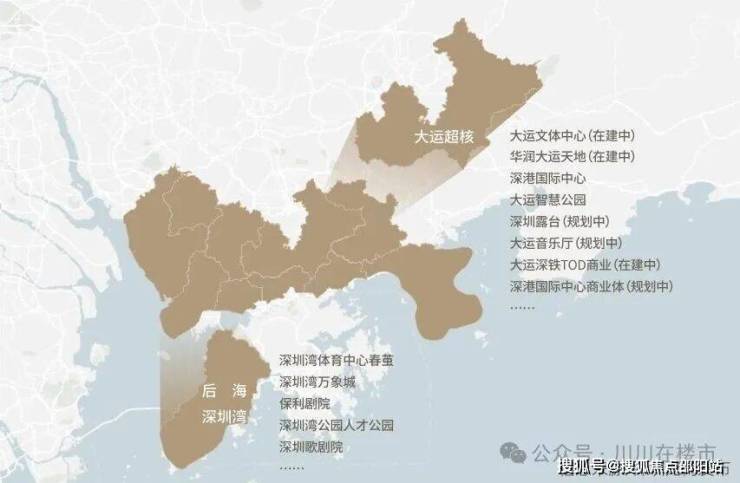 近享华润·大运天地约5万方纯商业空间 (已开业) 、深港国际中心的商业约36万方(规划中)、大运枢纽上盖-深铁x华润万象生活联手带来的TOD商业(在建中) 。