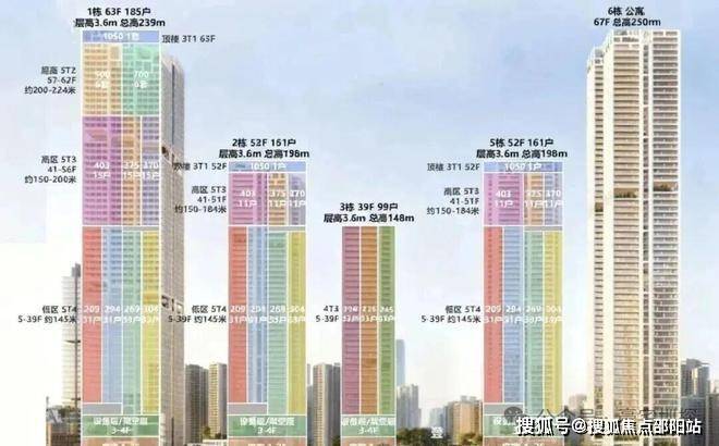 容积率7.59,限高250米,5栋超高层(1栋公寓+4栋住宅)。