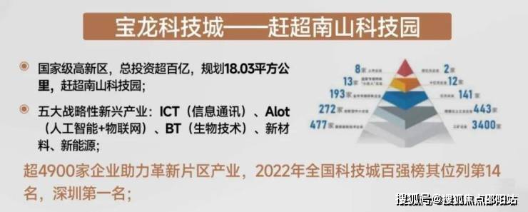 2022年宝龙科技城位列全国科技城百强榜第14名,深圳第一名,2022年宝龙街道规上工业增加值增速居全区第一,规上工业总产值全区第二。