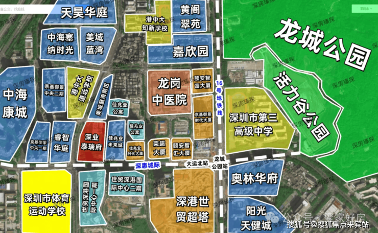 ・地铁:紧邻地铁 16 号线龙城公园站(约 600 米),2 站大运枢纽。未来地铁深惠城际(建设中)在此交汇,4 站深圳北枢纽、5 站西丽、8 站前海;