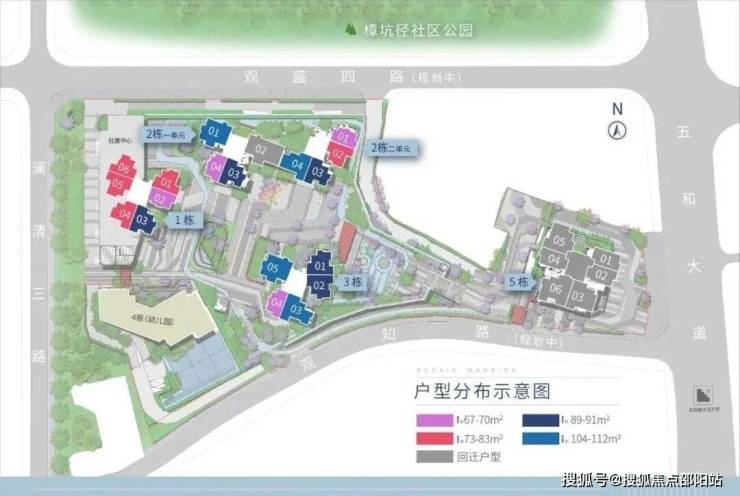 【楼栋规划】1栋、2栋、3栋、5栋为住宅,4栋为幼儿园