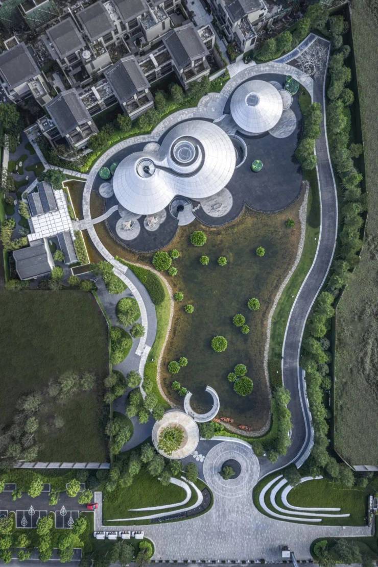 浮山云舍是罗浮山·十里方圆项目的展示中心,斥资亿元打造,由著名建筑师俞挺亲自操刀,整个建筑如同从水中生长而出,深度契合项目的自然之道。