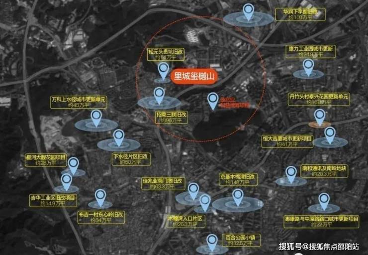 区域内里城、华润、华侨城、万科、招商等8大品牌开发商云集,超700万㎡旧改体量,里城玺樾山与约96万方招商三联旧改综合体项目一路之隔,西侧为约14万方奥园贵坑旧改项目,2KM内毗邻约110万方华润下李朗旧改项目,多个大型综合体环伺,左右皆繁华。