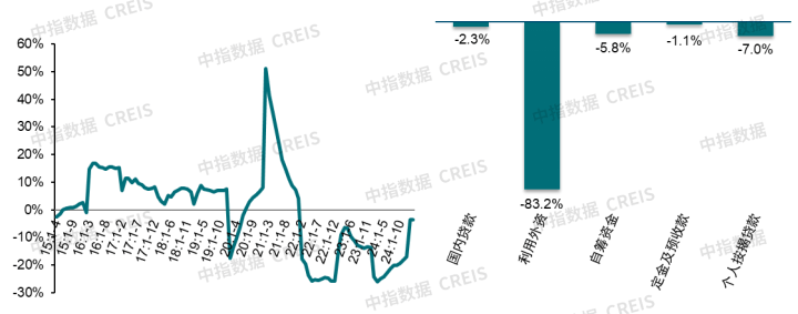 图:房企到位资金同比增速及各项资金来源同比增速对比