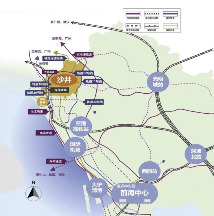 沙井街道位于宝安区西北部,是粤港澳大湾区、珠江口100公里黄金内湾的核心区域。深圳宝安国际机场、沿江高速、深圳外环高速、广深高速近在咫尺。穗莞深城际线在辖区设沙井西站;地铁11号线在辖区设有马安山站、沙井站、后亭站;地铁20号线设有会展城站;地铁12号线沙井设有海上田园南站、海上田园东站,12号延长线设有蚝乡站、西环路站、沙三站、步涌站;地铁18号线规划建设推进中。