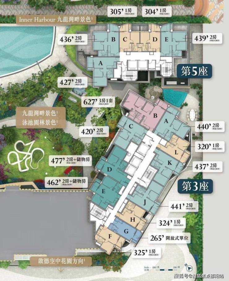 幢数:2幢住宅大厦(第3座及第5座),分别楼高36层(第3座)及7层(第5座)