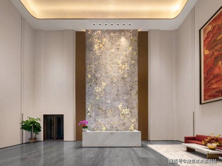 譬如,在归家路径的营造方面,就体现了金光华集团对生活仪式感的尊重。从社区入口开始,项目便引入"艺术酒店式归家"的设计逻辑,通过材质、光线、尺度的控制,让归家的动线从容而有仪式感。这种"大气但不张扬"背后,呈现的是设计的考工,是质感的沉淀。