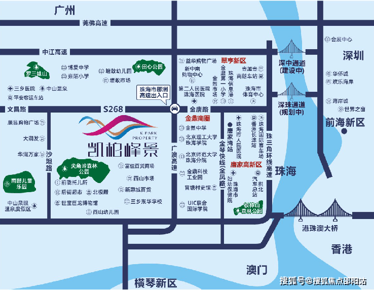 项目位于中山南部珠海北部,多维立体交通路网:深中通道(建设中)、深珠通道(规划中)、港珠澳大桥(已通车)、广珠西线、京珠高速、珠海轻轨北站。实现与大湾区城市的互联互通,打造“广深中珠1小时生活圈,与港澳30分钟内互达”的时空距离