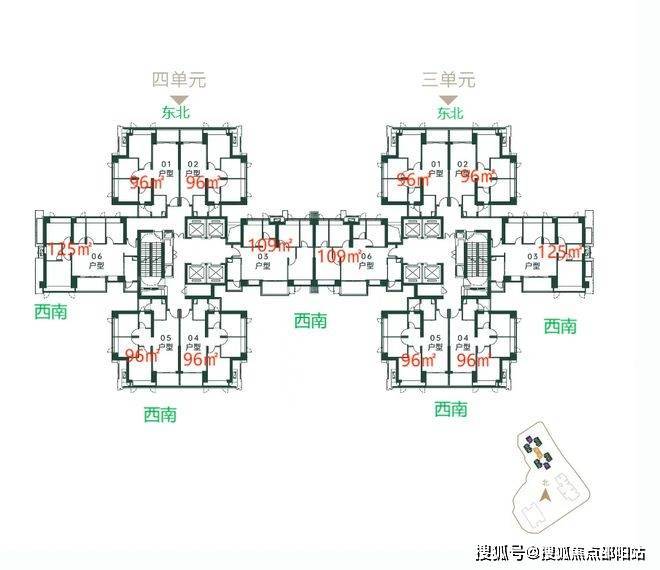 推出约560套,面积96-109-125㎡,整体户型西南向(03/04/05/06),部分东北(01、02户型)