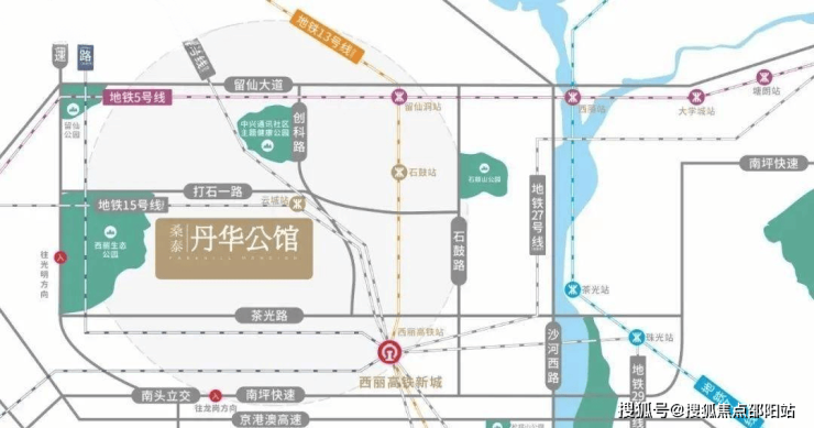 项目周边有5号线的留仙洞站(距离较远,步行距离1.8公里)、13号线(建设中,预计2023年年底开通)石鼓站(距离约900米,步行10分钟左右)和最近的地铁站15号线(建设中)打石一路站,直线距离约400米左右。