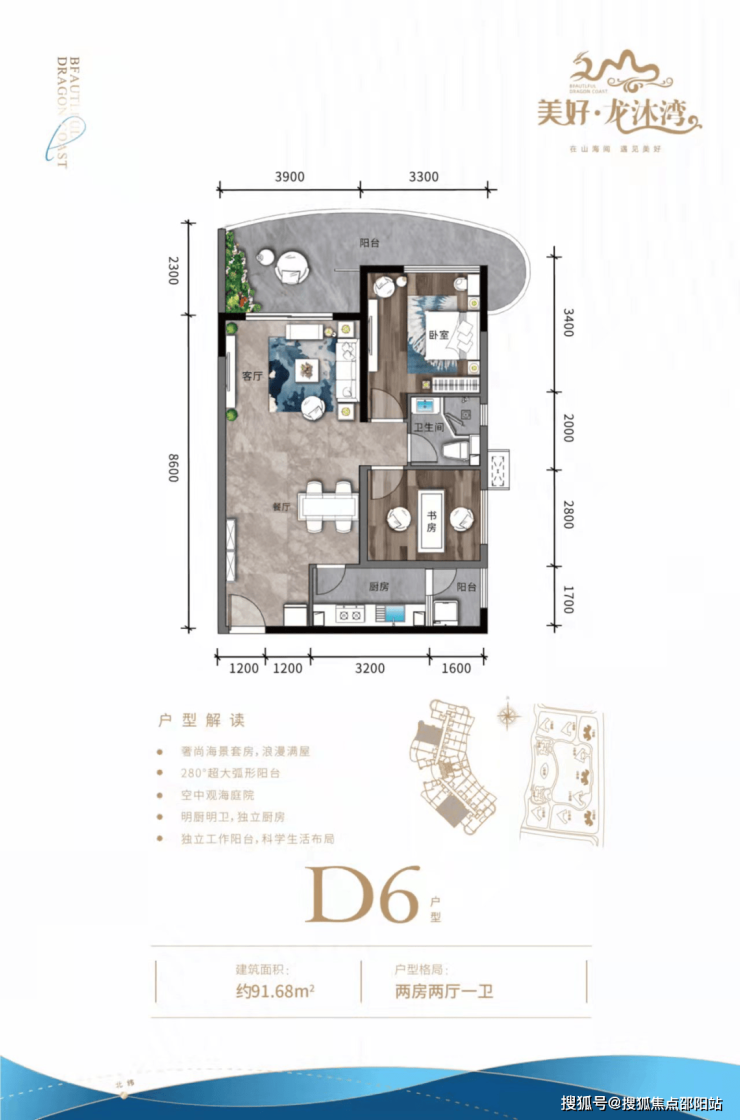 ④ 三房户型三面采光,空间方正合理,双独立明卫,270°环型瞰海阳台