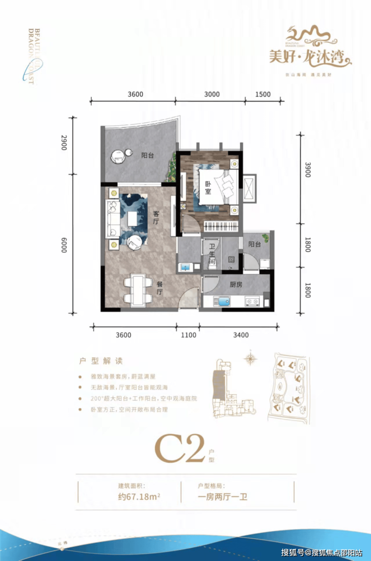 ① 开间户型独立明卫,各功能区域俱全,瞰景阳台,超大景观面宽