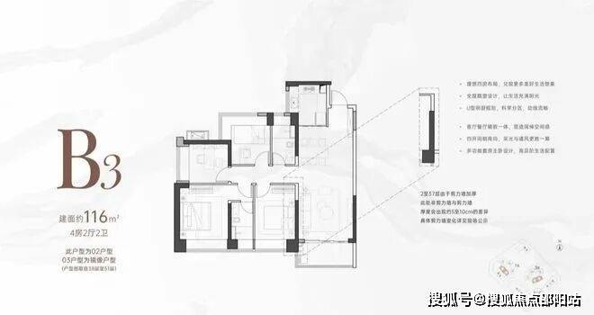 宽境4房布局、全南向开间、270°环幕观景阳台、餐客一体化通厅、U型全明厨房,动线流畅、多功能套房主卧,配备独立卫浴+衣帽间,悦享高阶生活