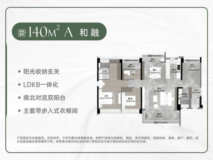 全南向宽幕瞰景大宅,通过大量细节实现“全能化户型”的迭代;LDKB奢阔厅、宽幕景观阳台、主卧小家化等亮点呈现,兼顾尺度与舒适度需求。