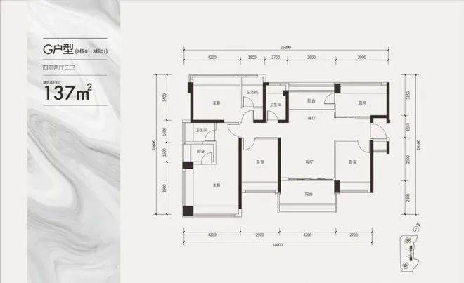 住宅房源涵盖三房四房,具体面积段有约77-83㎡3房2厅1卫,约86-91㎡2房2厅2卫,约108㎡4房2厅2卫,约137㎡4房2厅3卫,带装修交付。