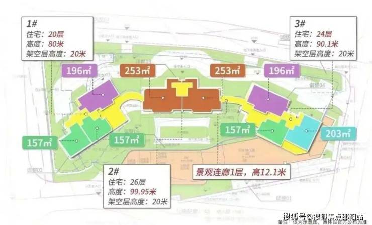 1栋(20层):两梯三户,主打157-196㎡户型;