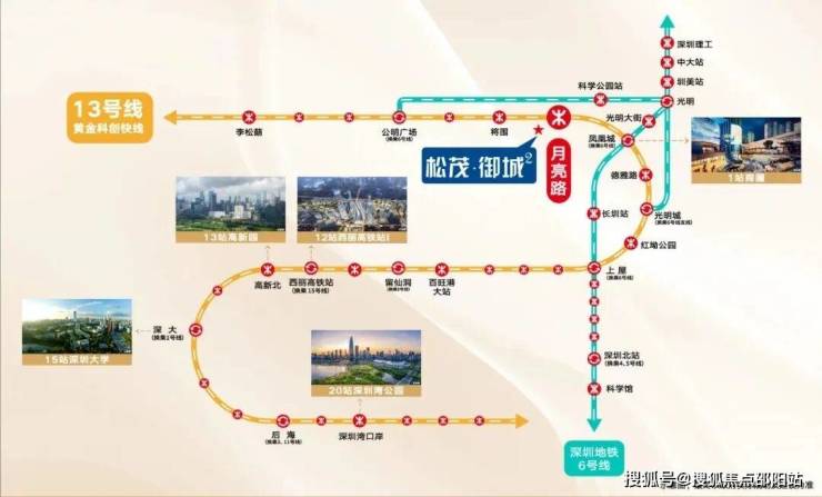松茂御城东侧为13号线公明车辆段片区综合开发项目。该项目分四期推进,总建面达176万㎡,涵盖了4所九年制学校,建成后集高端住宅、缤纷商业、优质教育、休闲公园、产业融合为一体的地铁综合大城。