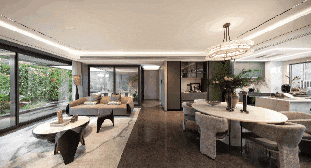 约13米舒朗尺度,客餐厨阳台一体洄游空间+全景IMAX观景阳台,繁华璀璨和城央园景一揽入怀,社交、聚会、独处皆可满足,生活场景豁然开朗。
