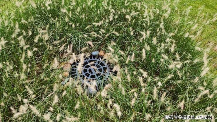 阳光草坪就利用地形自然引导水流,同时留出排水口,减少草坪积水的可能。甚至,就连排水口都用花草掩映起来,不只是更美观,也能防止儿童不小心踩踏。