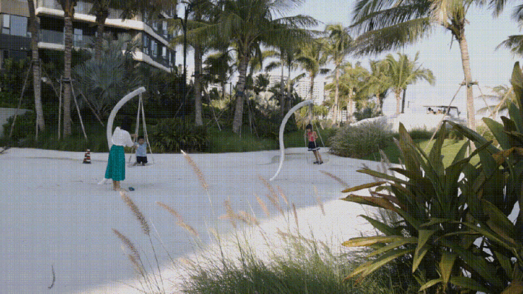 孩子们沿着蜿蜒的水溪戏水前进,狼尾草丛随风摇动,轻盈诉说海风的故事,亲子关系在这里张弛舒展又亲密连接。
