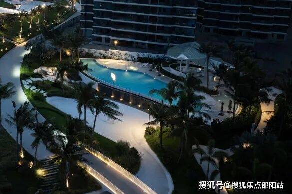 夜幕降临时,泳池底部的灯光亮起,点点闪烁如同蓝眼泪,这是独属于老爷海和半岛1号的浪漫时光。