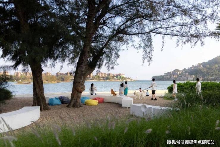 岸边有三棵原生的高大树木,它们曾见证着这片海域一轮又一轮的变迁,我们选择将其保留,并在树下增设充满艺术感的白色弧形座椅,供人们休憩闲谈,放空看海,与不断生长的场所谱写新的回忆。