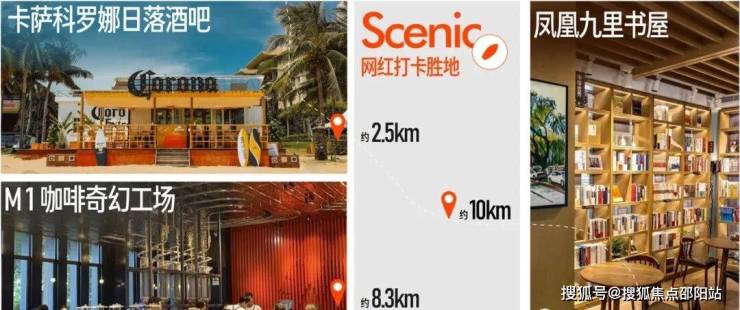 N多网红打卡点 —— 卡萨科罗娜日落酒吧(约2.5km)、M1咖啡奇幻工场(约8.3km)、冲浪俱乐部、书屋等网红娱乐丰盈海上趣味生活。
