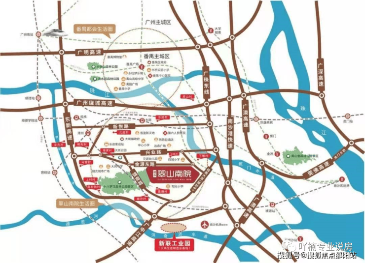 半小时番禺生活圈 项目位于番禺南边,以大岗为核心,距离市 桥南仅半个钟车程,往北途径广珠东线能通往番禺,往西途径顺番路 能通往佛山顺德,往东途径省道S111能通往南沙 金洲,商圈:荔园新天地、番禺奥园广场、番禺永旺梦 乐城、基盛万科里、番禺万达广场 医疗:番禺中心医院、广东省中医院大学城分院、 广东祈福医院