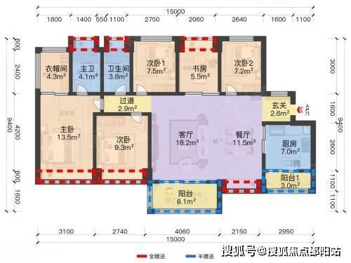 119㎡4+1 房:南北通透,15 米南向开间,四开间朝南,改善家庭首选。