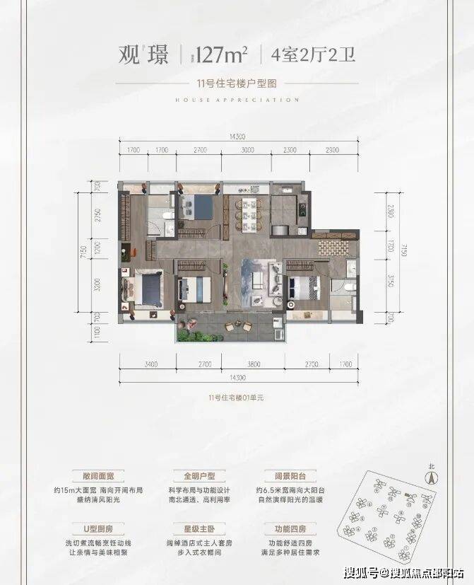 改善细节:大面宽阳台、主卧套房设计、明厨明卫。