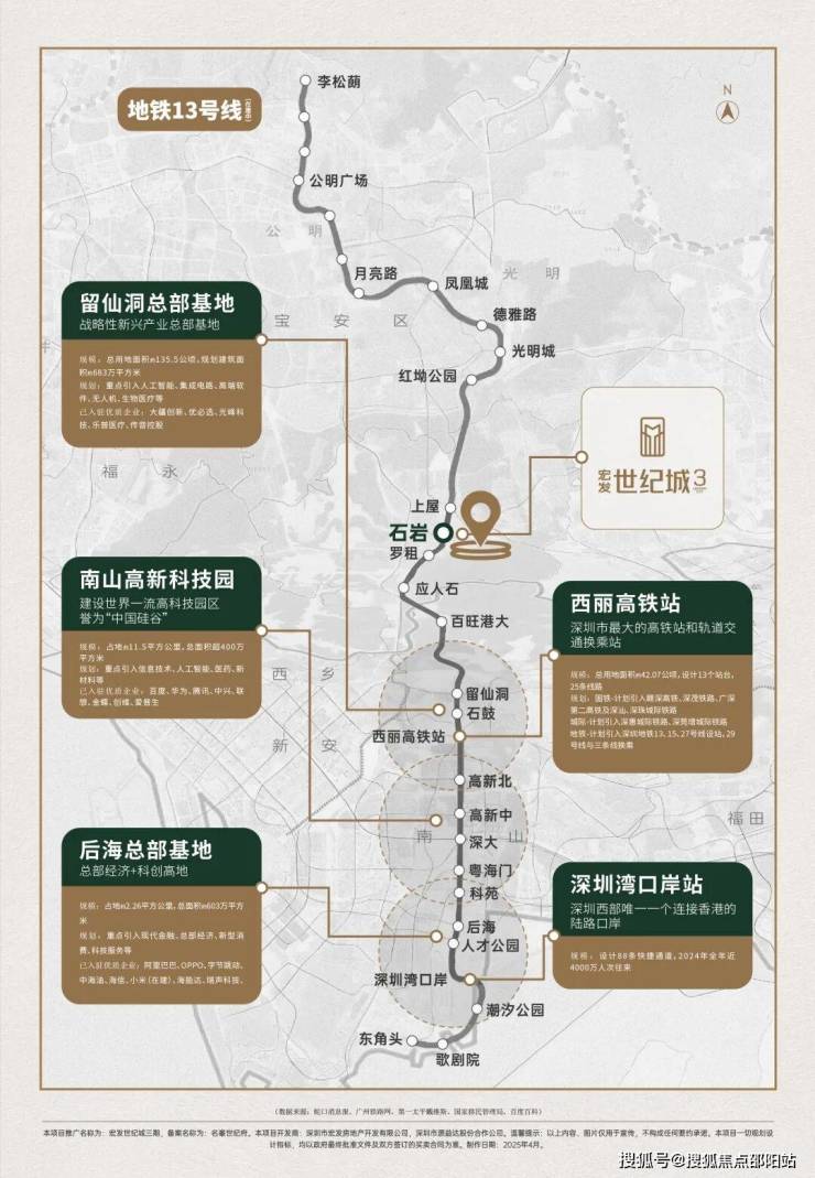 距13号线(在建中)石岩站约1公里,4站南山,7站科技园;