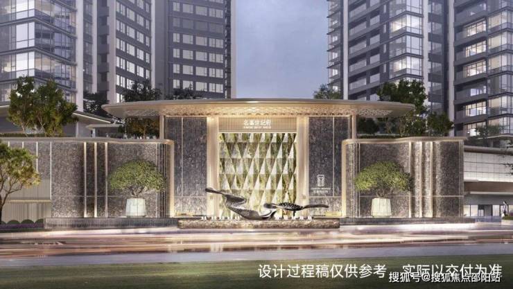 【礼遇一:珠光之门】:高门纳吉,深宅藏福。主入口大门整体宽60米,高10米。选用奢石、天然石材,配合水景、玉树,缔造超五星级归家礼遇;