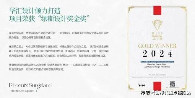建筑大师:特邀深超总/前海豪宅同款设计团队华汇设计操刀,其作品从全球近3.8万件中脱颖而出,斩获有“设计界奥斯卡”之称的2024年国际奖项协会(IAA)缪斯设计奖金奖,该奖项仅约1%作品可获最高荣誉;