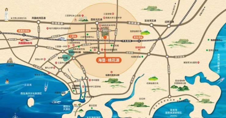 🚖【交通配套】项目位于三亚落笔洞路、鹿城大道两大城市主干道交汇处,距环岛高速荔枝沟互通仅约800米,三亚动车站约7公里,三亚凤凰机场约17公里。咫尺三亚繁华,家住城芯更自在。