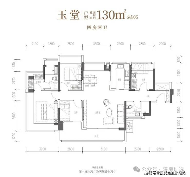 •玉堂·建面约130㎡4房2厅2卫:南向四开间,约14.7米IMAX光幕,尺度自成