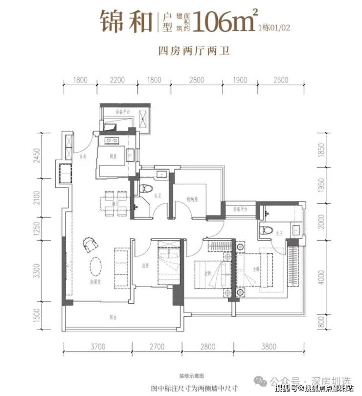 •锦和·约106㎡四房两厅两卫:南向四开间,一线园林景观,自在奢想