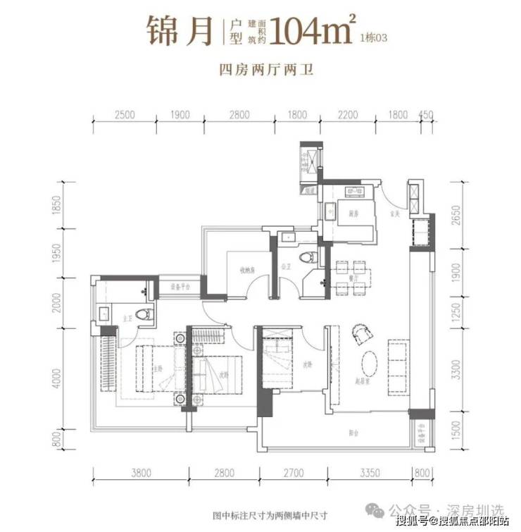 •锦月·建面约104㎡4房2厅2卫:南向四开间,6米阳台引景入室,自此生活融于风景