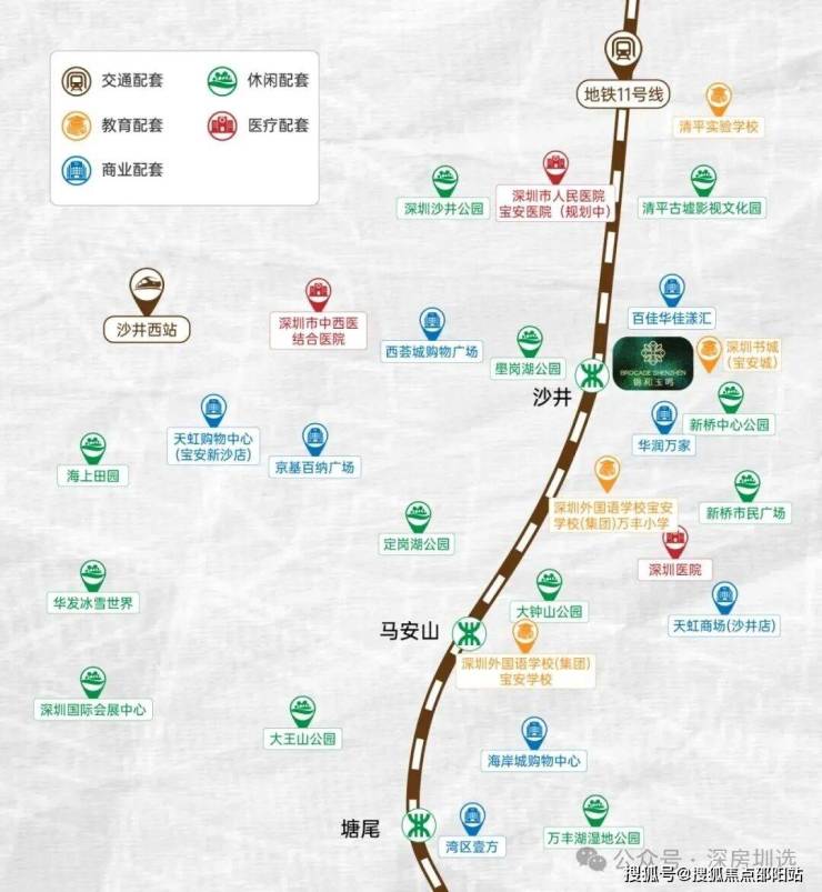 地铁直达:约300米(直线距离)11号线沙井站,6站直达宝安机场,8站宝中,9站前海