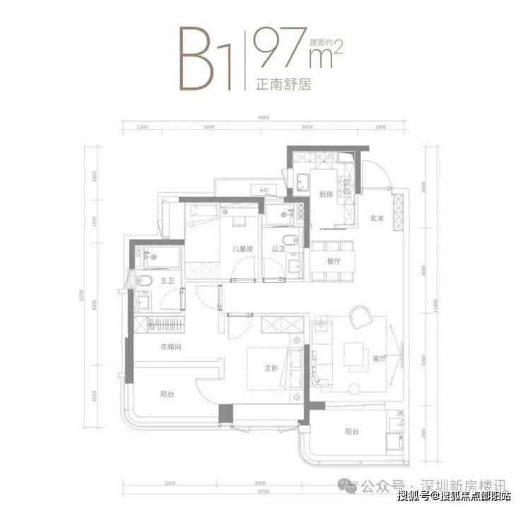 💥97平3房2卫