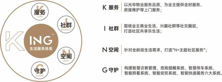 光华物业,金光华集团旗下子公司,24载专业物管经验沉淀,以前瞻视角为项目量身打造“king+”生活服务体系,赋予美好大城生活体验。