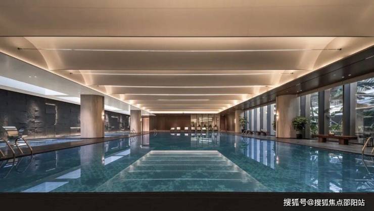 半国标恒温泳池,采用伊朗进口的静雅灰皮革面石材与超白洞石墙面,营造出一方静谧之境。悠然游弋其中,池底深邃的深海蓝调,让人恍若同时漫游于星河与海底秘境。
