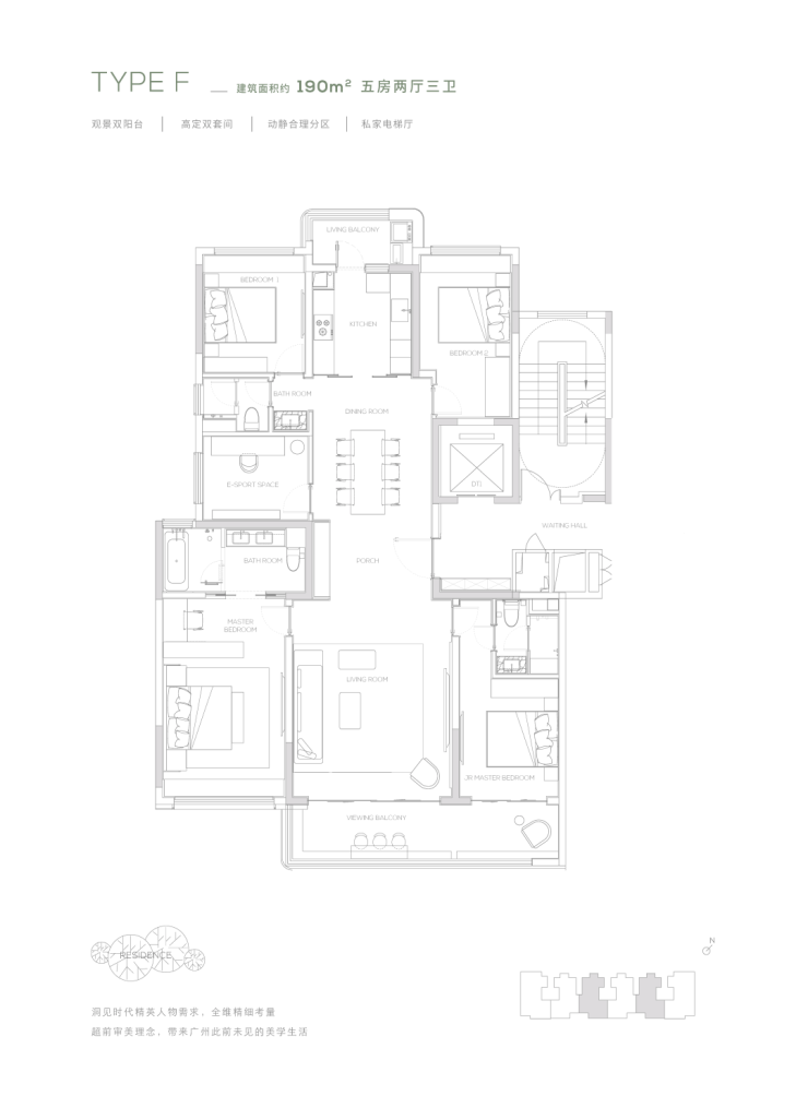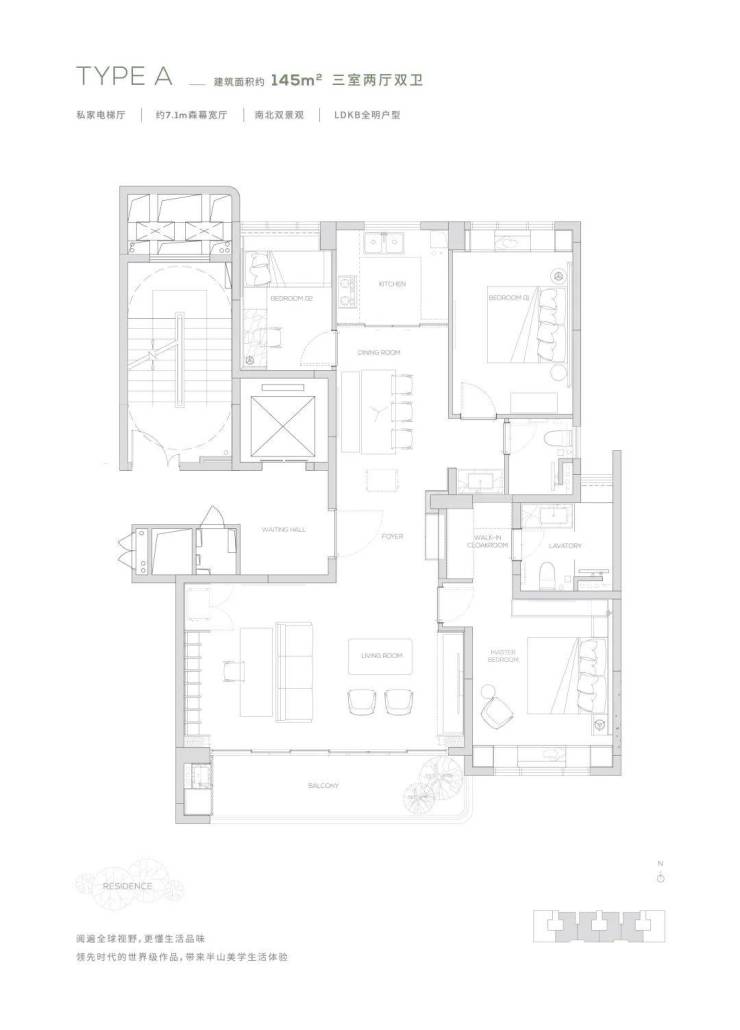观景双阳台-高定双套间-私家电梯厅-双洄游动线