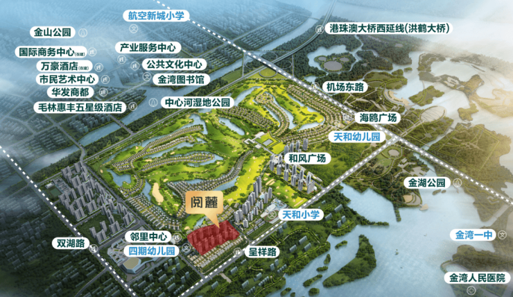 ·项目周边:航空新城小学(2km)、航空新城中学(3km)、省重点中学『珠海一中』(2km)、珠海TOP1贵族学府『容闳学校』(3km)