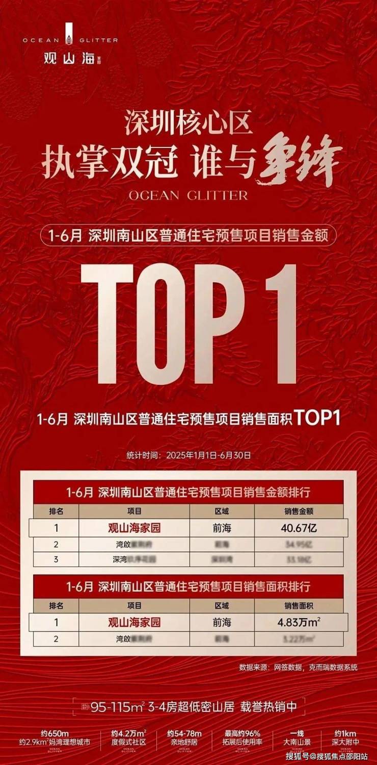 "前海现象级红盘观山海家园以40.67亿销售额登顶双冠王,9米水庭院瀑布实景呈现低密山居生活,138㎡楼王单位即将限量推出,用'核心地段+稀缺资源+硬核产品力'重构深圳置业新标准。"
