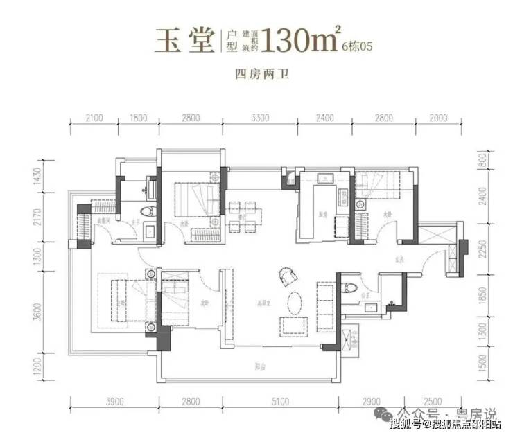 四开间IMAX光幕引景入室,以LDKB家庭聚场升温情感,更以双转角主卧套房,礼献一方休憩殿堂。• 玉堂·建面约130㎡4房2厅2卫:南向四开间,约14.7米IMAX光幕,尺度自成