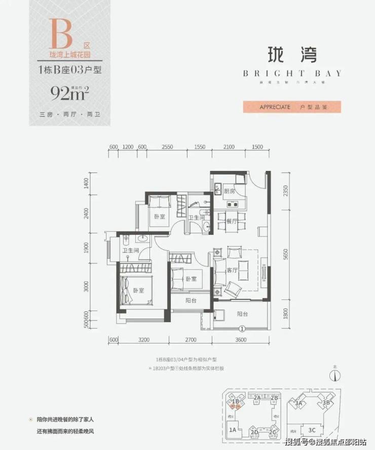 梯户比:1栋B座3梯6户;2栋B座2梯3户;