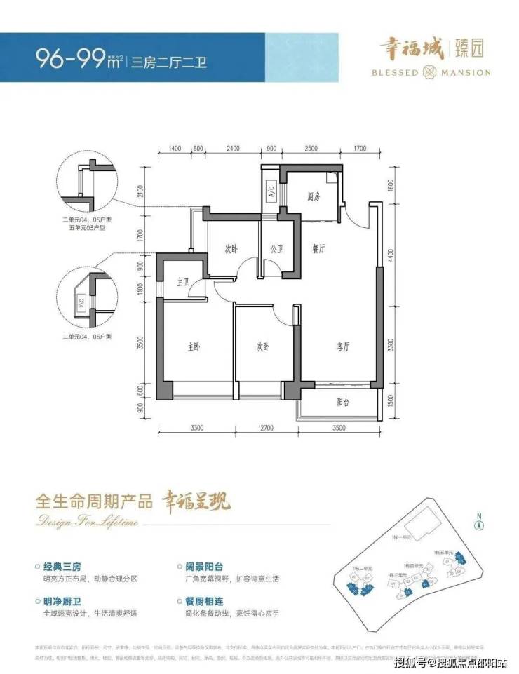 5.9米横厅+南北双阳台,三段式分离卫浴,得房率87.1%,东南向。